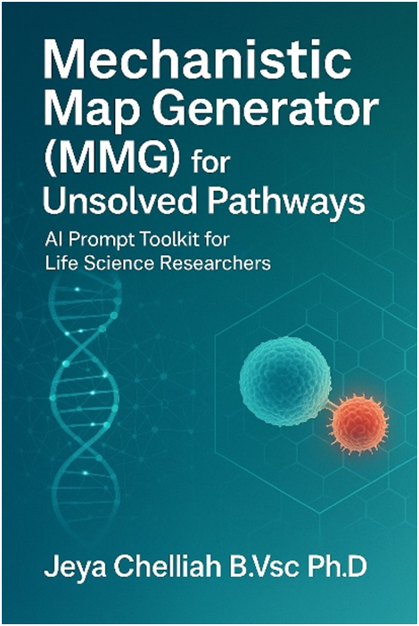 Mechanistic Map Generator (MMG) for Unsolved Pathways™is an AI-powered toolkit designed to assist life science researchers in uncovering hidden or speculative links in biological pathways. These missing links are often critical to understanding disease mechanisms, cell signaling crosstalk, or the full flow of regulatory networks, but are difficult to identify due to gaps in the literature or experimental limitations. This toolkit provides 15 expert-crafted prompt templates for use with ChatGPT or any other large language model (LLM). Each prompt is structured to help researchers generate novel hypotheses about unknown intermediates, non-canonical steps, feedback loops, or signaling branches that might explain observed phenomena in their experimental system. Why is this important? Traditional research workflows depend heavily on prior knowledge and published data. However, many biological pathways remain only partially mapped. Using MMG, researchers can leverage AI to fill those gaps creatively and logically—acting as a brainstorming partner trained on vast biological knowledge. How do these prompts help?